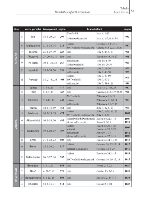 libro nome parashà brano parashà pagina brano haftarà pagina