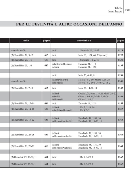 Kippùr pomeriggio 3 Vaikrà 18, 1-30 491 sefarditi Giona 1, 1-4, 11; Michà 7, 18-20 1149