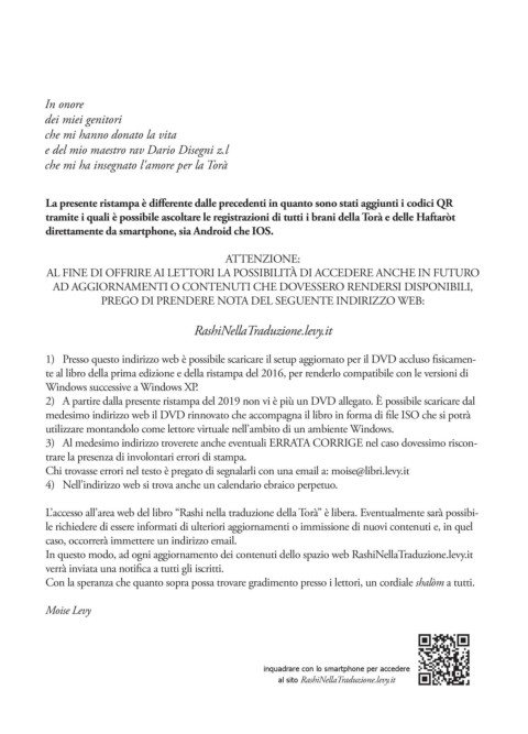 L’accesso all’area web del libro “Rashi nella traduzione della Torà” è libera. Eventualmente sarà possibi-